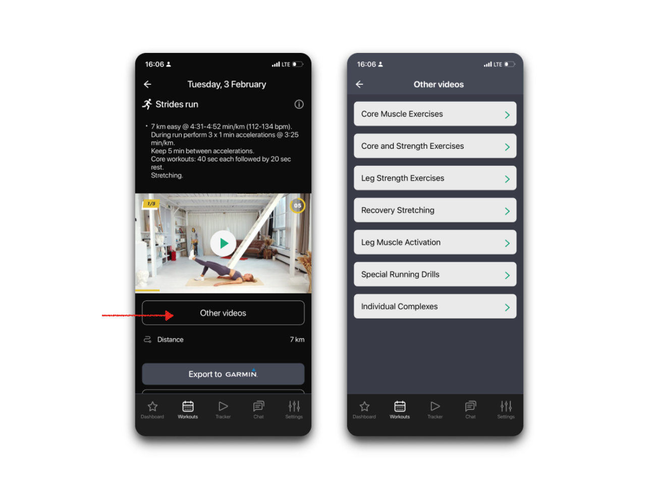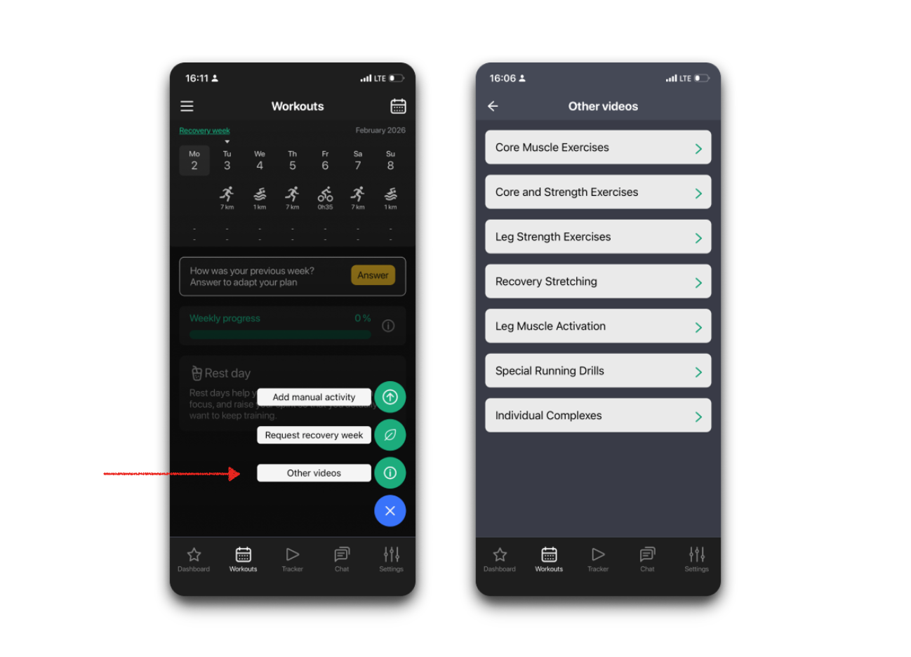 “Other Videos” is also available from the Plus button, so you don’t have to stick to your scheduled workouts.
